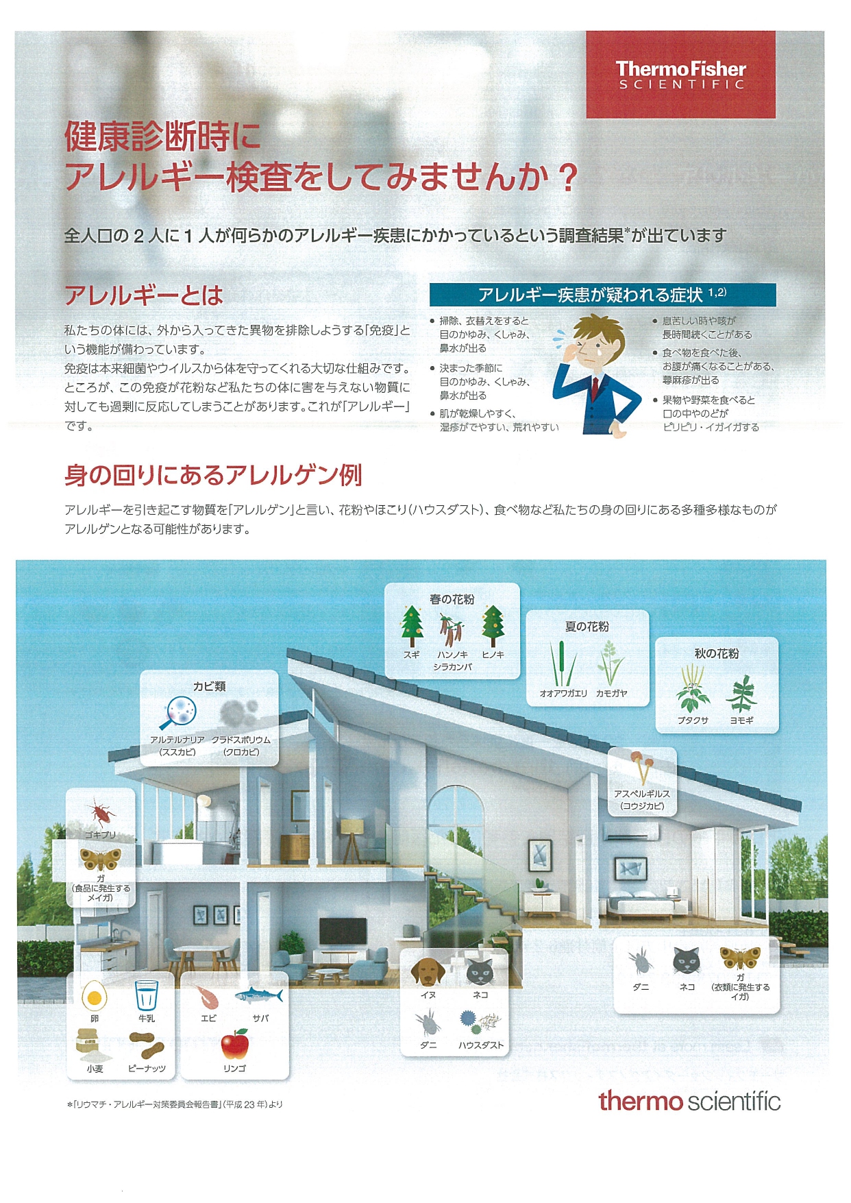 当院では、一度の採血で代表的な39項目のアレルギーを調べられる検査を実施しております。